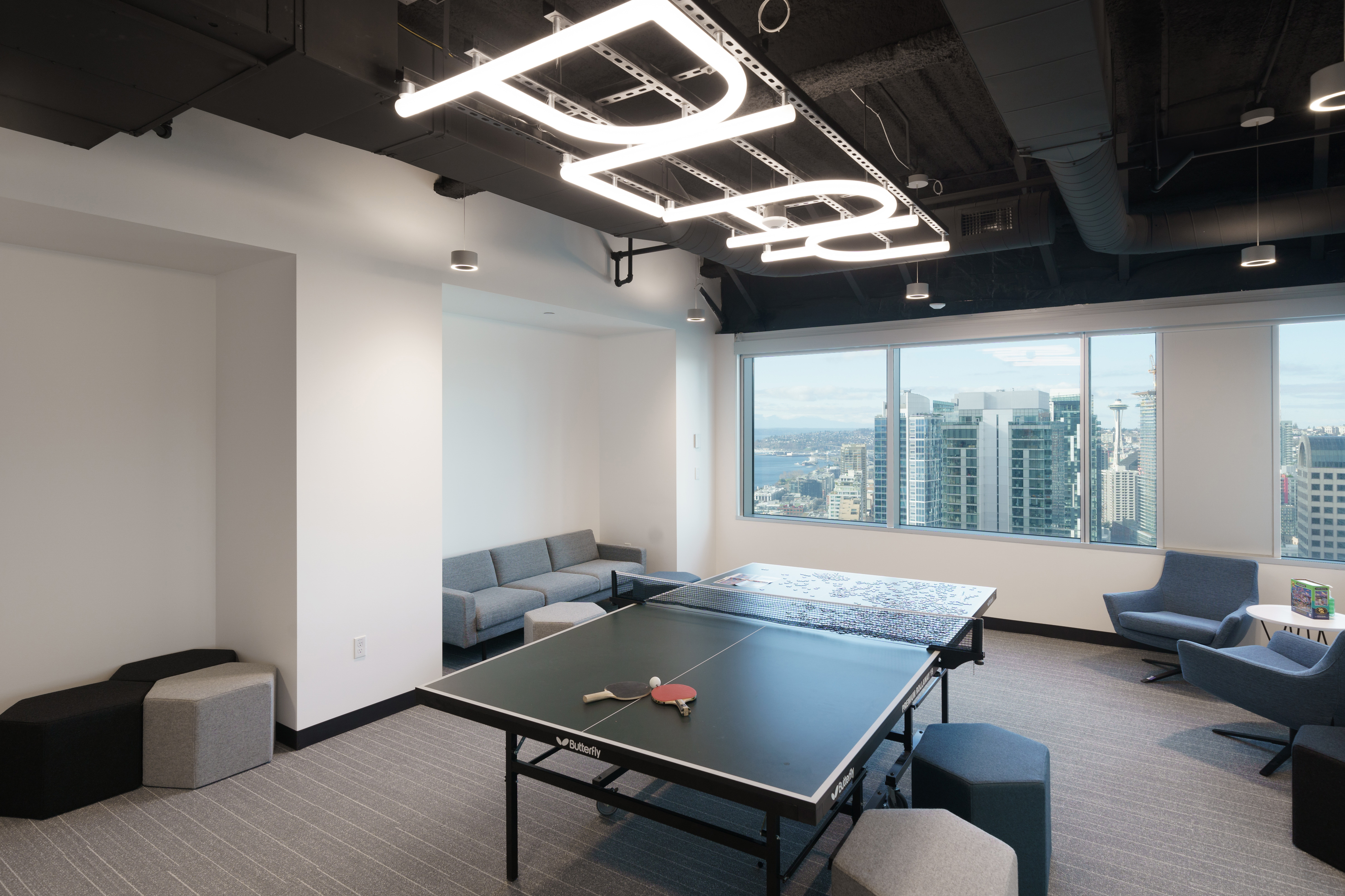 Given the evolving needs of offices, particularly post-pandemic, prioritizing collaborative teamwork and enhancing the overall quality of workspaces is imperative. This, in turn, translates to innovative lighting concepts. Our Seattle office’s lighting design sets a standard for a contemporary workplace.